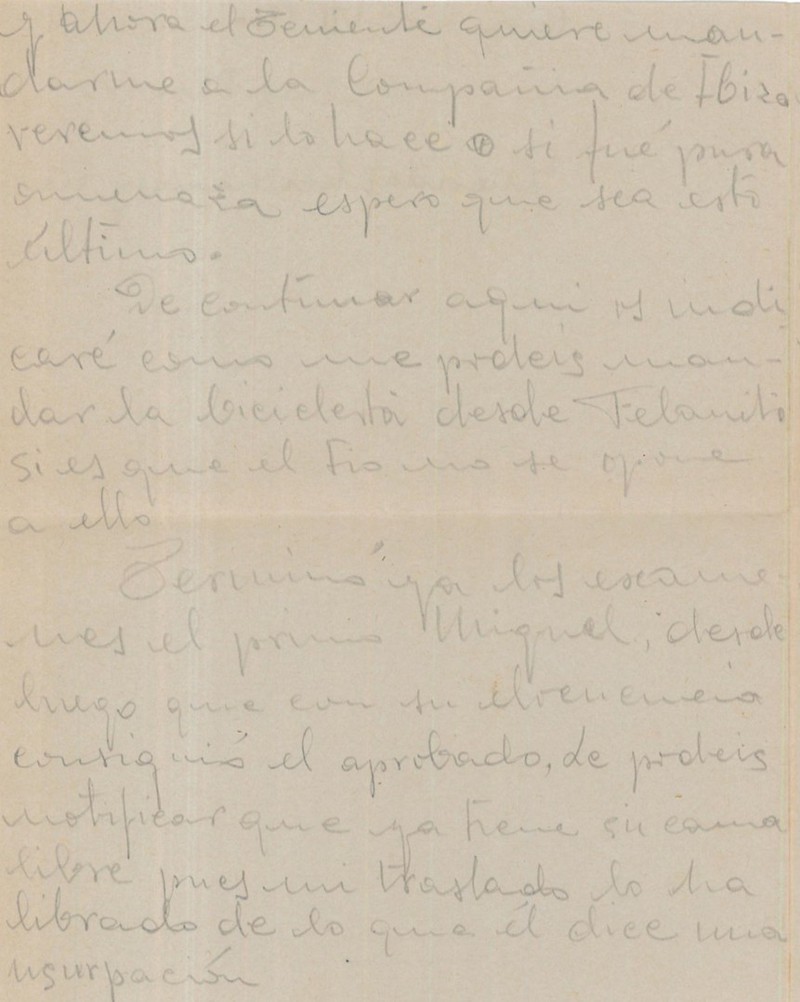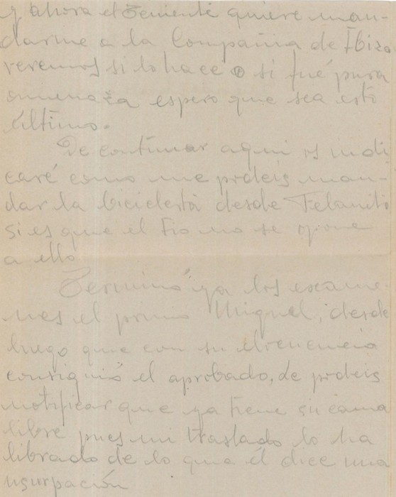 Terminó ya los exámenes el primo Miquel, desde luego que con su elocuencia consiguió el aprobado. Le podéis notificar que ya tiene su cama libre, pues mi traslado lo ha librado de lo que él dice una usurpación.