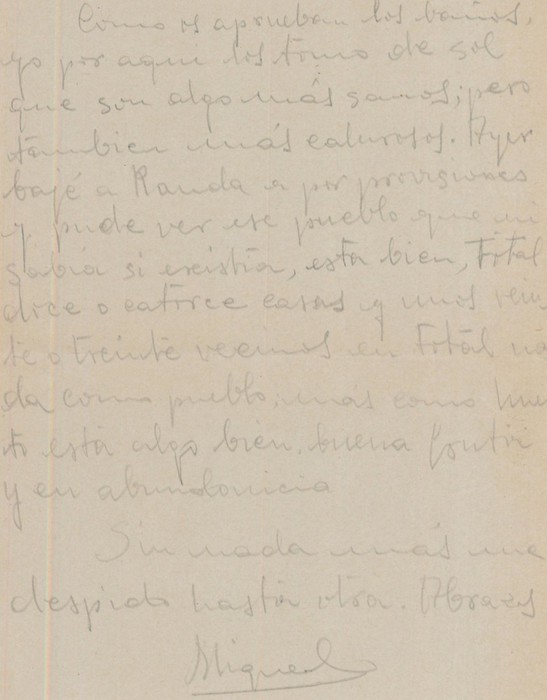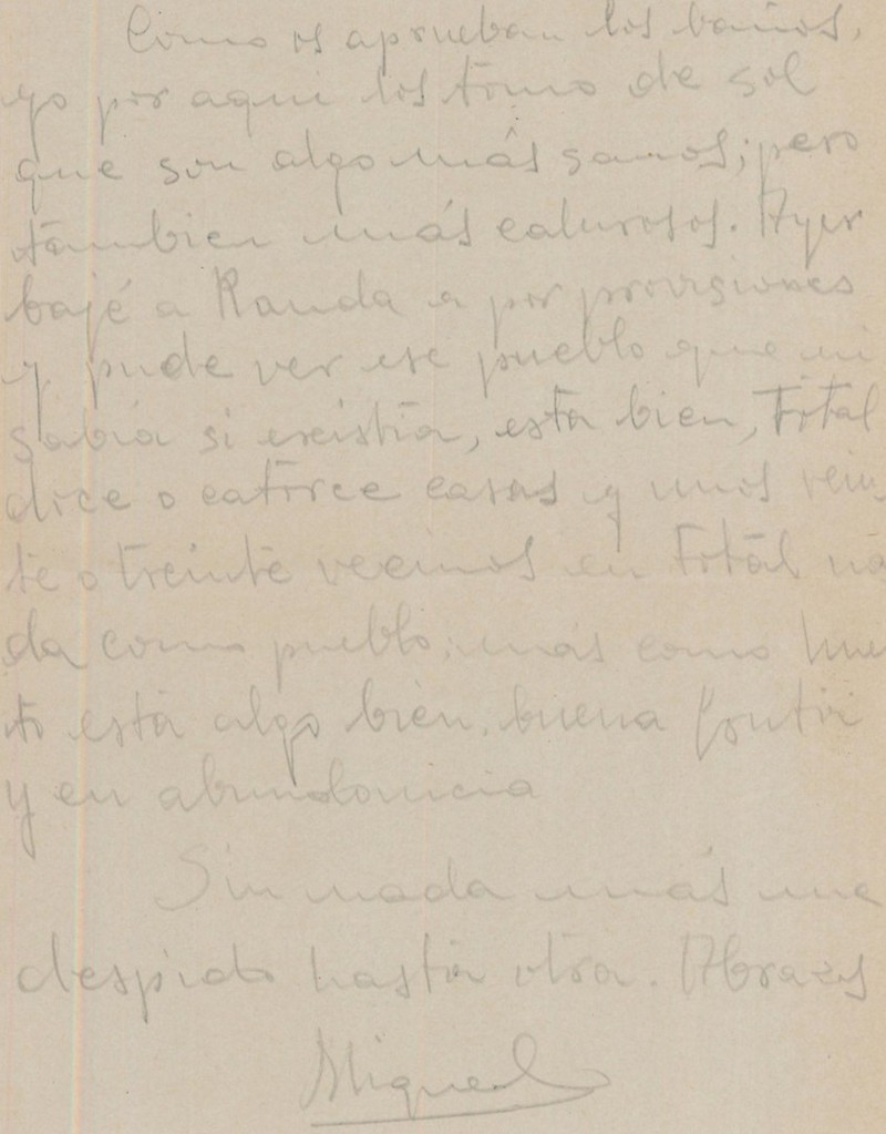 ¿Cómo os aprueban los baños? yo por aquí los tomo de sol que son algo más sanos, pero también más calurosos. Ayer bajé a Randa a por provisiones y pude ver ese pueblo que ni sabía si existía, está bien, total doce o catorce casas y unos veinte o treinta vecinos en total, nada como pueblo, mas como huerto está algo bien, buena fruta y en abundancia.
