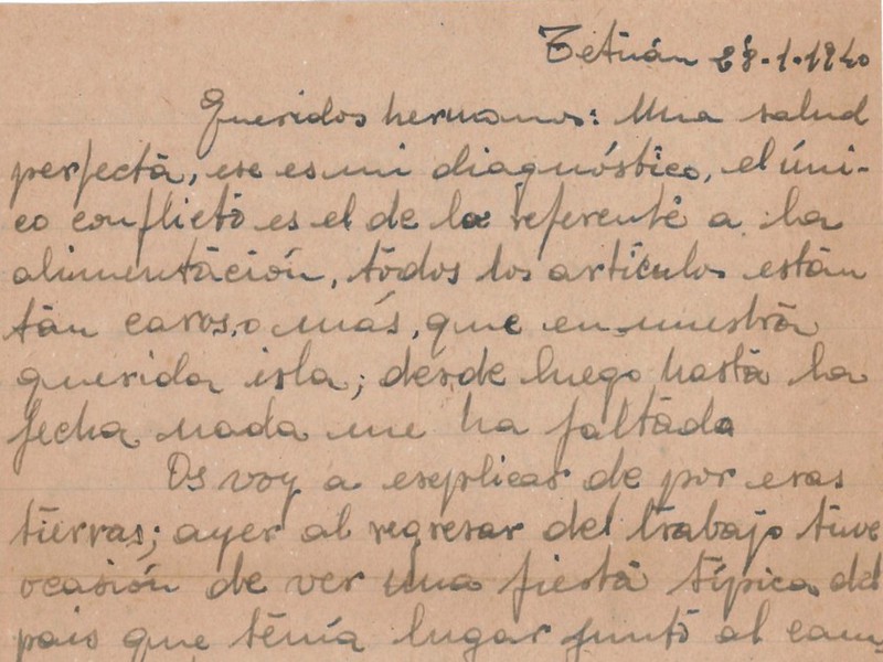 El viaje a Tetuán fue un infierno de suciedad, hambre y miedo. Viajaron durante tres días en vagones de ganado cerrados con puertas correderas. Pararon de noche en alguna estación de Andalucía y vieron los estragos de la guerra en los andenes. En Algeciras embarcaron hasta Ceuta y de allí a Tetuán. También se conserva correspondencia desde Tetuán. Un campo duro, pero un lugar cuyo exotismo despertó la curiosidad de un espíritu joven y curioso.