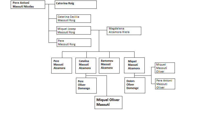 Cabe destacar los matrimonios de Pere Oliver Domenge con Catalina Massutí Alzamora y Dolors Oliver Domenge con Miquel Massutí Alzamora, ya que, además de la consanguinidad les unirá una fortísima amistad y la dedicación a la oceanografía, tanto de Miquel Massuti Alzamora como de los hijo y sobrino, Miquel Massutí Oliver y Miquel Oliver Massutí.
