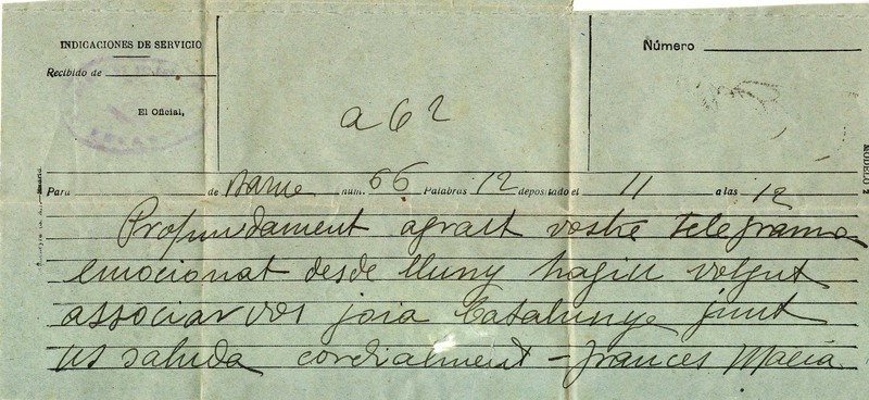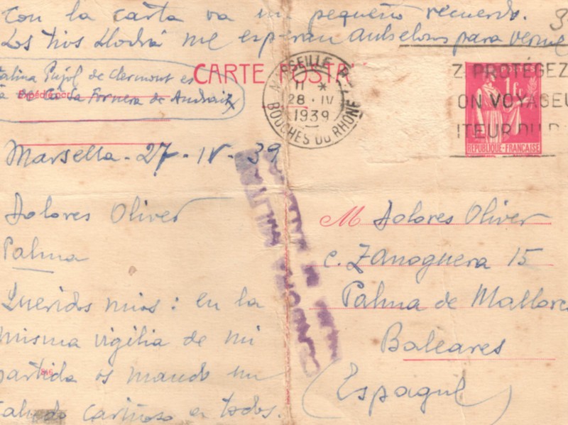 Mantuvo también correspondencia con su hijo Miquel cuando este se encontraba preso en el campo de trabajo en Tetuán (África):