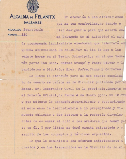 En 1936 fue elegido de nuevo alcalde de Felanitx en la II República.