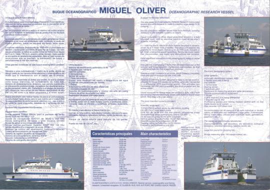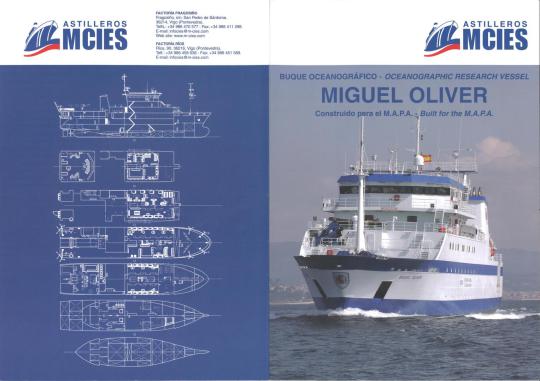 EL B/O MIGUEL OLIVER, es uno de los cinco buques punteros en el ámbito internacional de embarcaciones científicas y uno de los tres de la flota pesquera y oceanográfica del Ministerio de Medio Ambiente del gobierno espanyol, junto con el "Vizconde de Eza", y el "Emma Bardán".