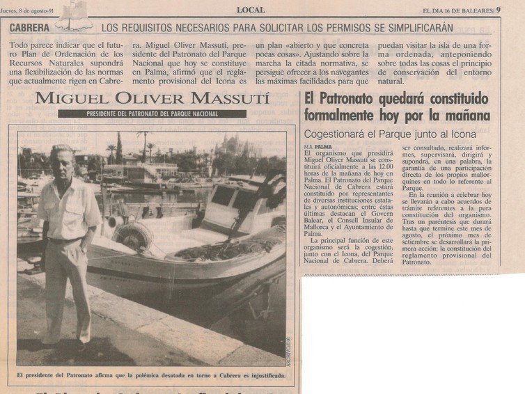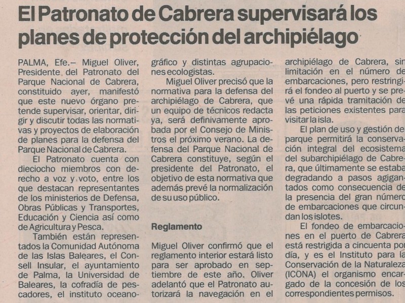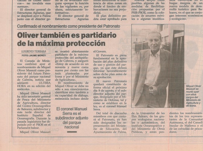 Presidente del Patronato del Parque Nacional Marítimo Terrestre de Cabrera