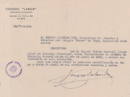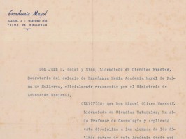 entre ells el del Col·legi Labor de Vigo del qual Miquel Oliver tenia un especial record o el de l'Acadèmia Mayol de Palma on va ser professor de Cosmologia.