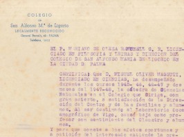 Entre els anys 1946 i 1949 impartí classes en diferents centres educatius i de diferents assignatures de ciències, com mostren els certificats que es conserven,