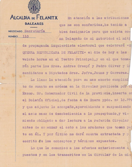 En 1936 va ser elegit de nou batle de Felanitx en la II República.
