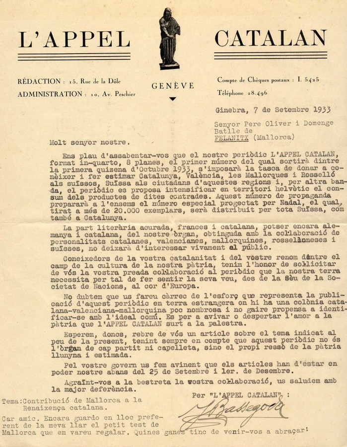 històrics la catalanitat de les Illes Balears, un text que es va convertir en emblemàtic per a una part del nacionalisme català a Mallorca.