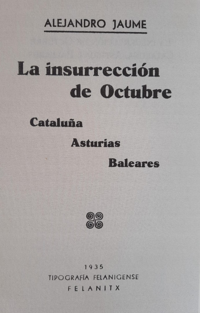 Sobre la revolució d’octubre de 1934 és de gran interés el llibre "La Insurrección de Octubre, Cataluña, Arturias, Baleares" d’Alexandre Jaume Rosselló, empresonat el 19 de juliol de 1936 i afusellat al cementiri de Palma dia 24 de febrer del 1937 juntament amb Emili Darder, Antoni Matei i Antoni Maria Ques.