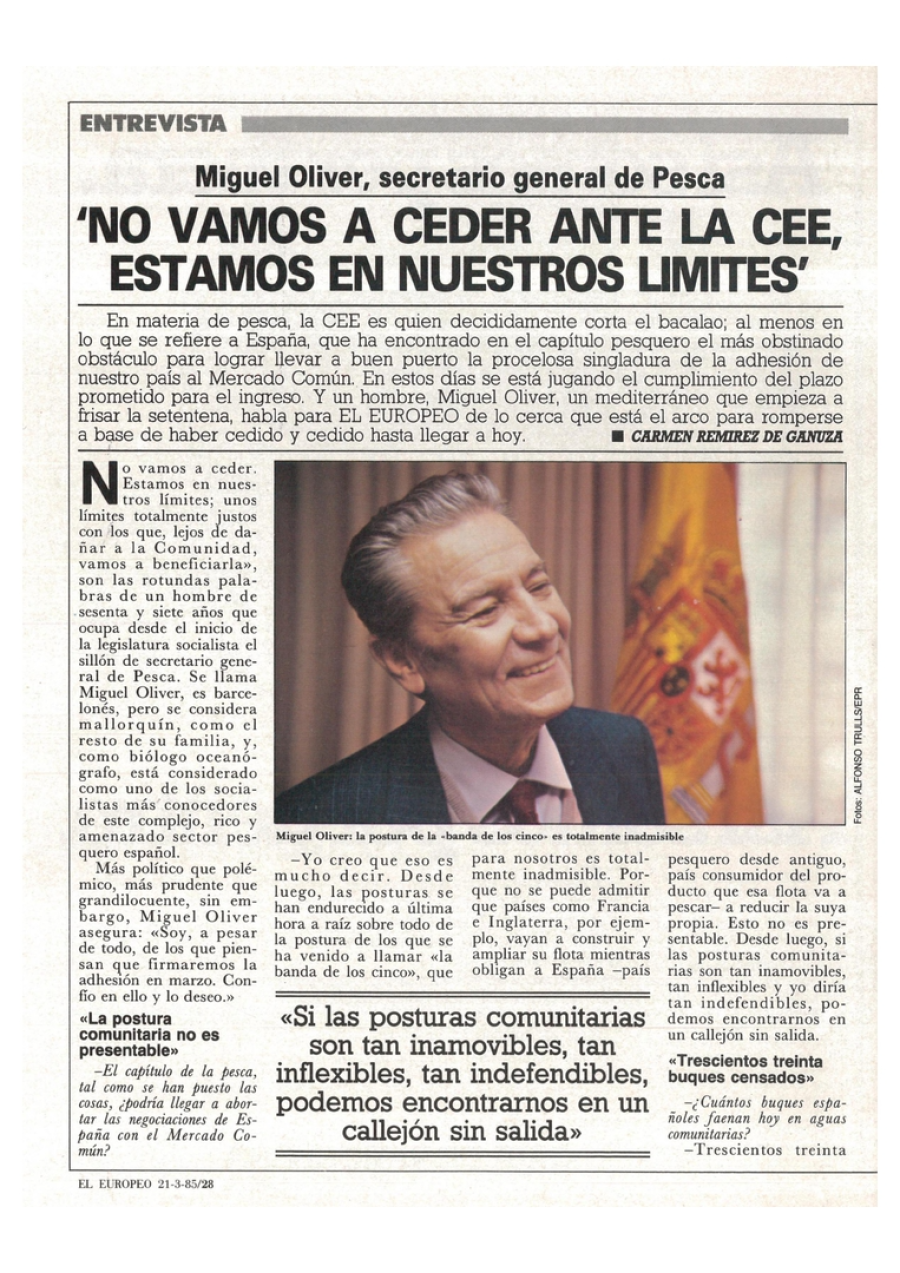 Això va situar a Miquel Oliver en un dels punts més calents de les negociacions per a l'entrada d'Espanya a Europa.