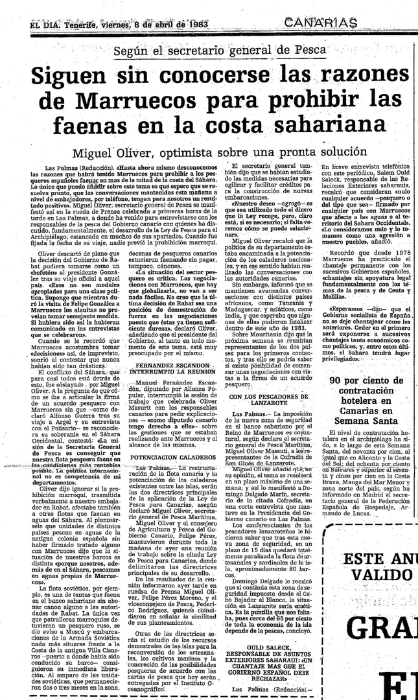 L'1 d'agost de 1983 es va firmar l'acord de pesca entre Espanya i el Marroc per pescar en aigües sahrauís.