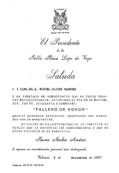 Va rebre mostres d'afecte des dels més diversos àmbits socials, com ser nomenat Faller d'Honor de