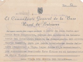 El casament coincidí amb la primera destinació de Miquel en el Laboratori Oceanogràfic de Vigo en el qual va estar tres anys. En plena postguerra, Maria Antònia va necessitar un salconduit per a viatjar des de Felanitx, a Mallorca, fins a Vigo, justificat pel matrimoni. D'aquesta data és també el primer llibre de família expedit amb motiu del matrimoni.